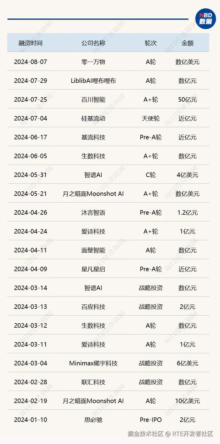 2、零一万物、月之暗面再掀国产大模型资本战:年内亿元级融资已有 20 起