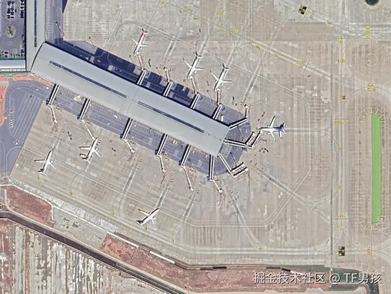 下面是我从谷歌地球上截取了济南遥墙机场的一个角落,我们检测一下飞机的位置: