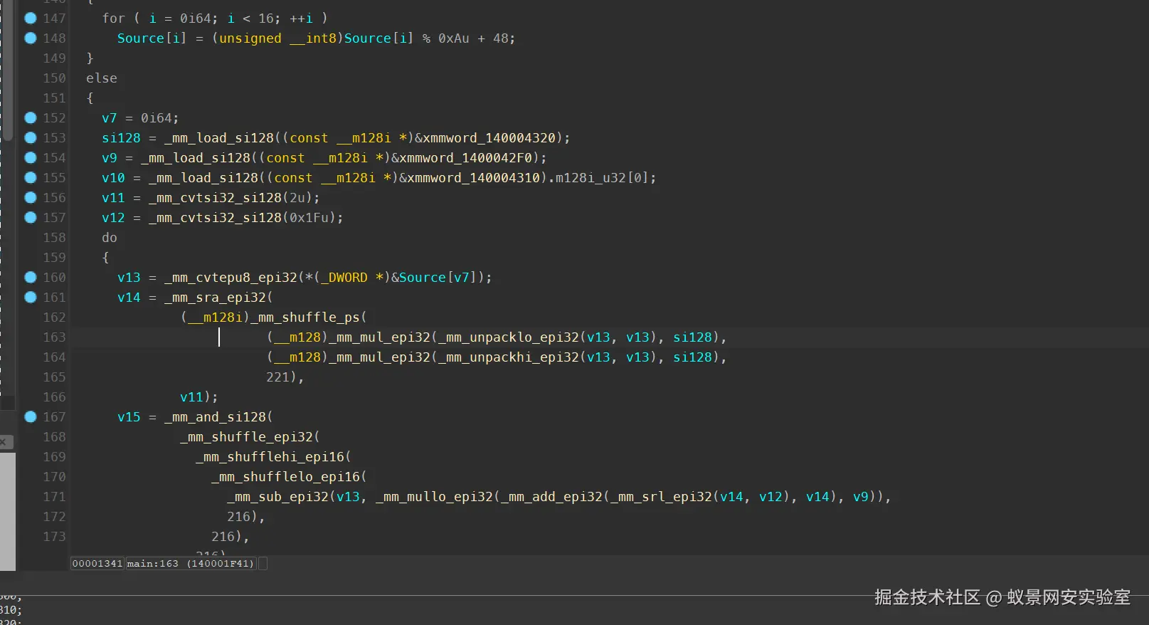 可以看到题目采用了SIMD指令集