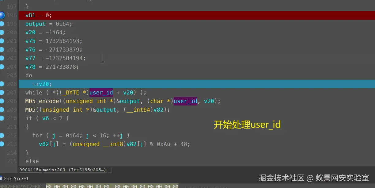 和调试machine加密一样,最终MD5(user_id)变成: