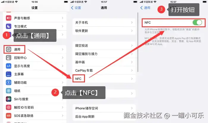 步骤2:在 【通用】 菜单中,找到并点击 【nfc】 。在【nfc】页面,将开关滑动到右侧以开启nfc功能。