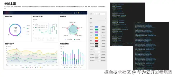 基于 Design Token 样式变量,可依据产品和品牌多样化的视觉需求实现灵活的样式定义与主题切换。用户可通过当前页面右侧的操作面板调整相应样式变量(如:字体、间距、各类颜色等)实时预览定制效果。