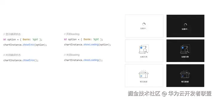 提供数据状态界面和调用接口,也支持用户传入自定义的图标和文本。