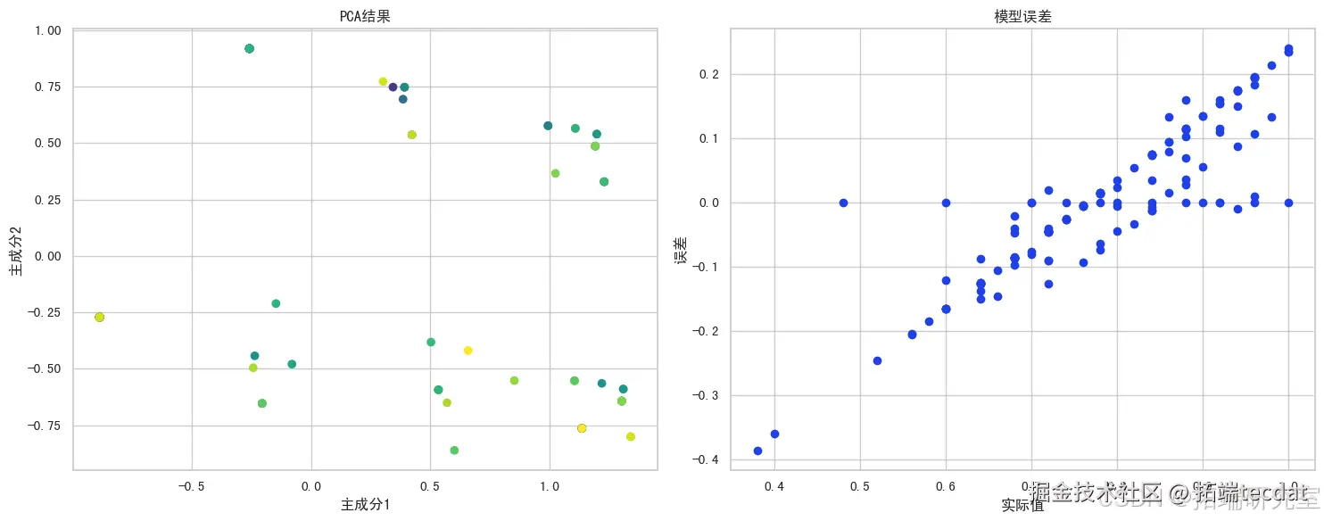 - 模型误差:展示了决策树模型的预测误差。每个点代表一个样本,其在图中的位置由实际满意度得分和预测误差决定。