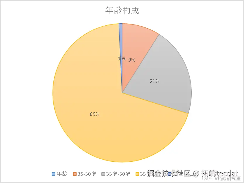 - 饼图:显示了不同年龄组的比例,每个年龄组使用了不同的颜色。
