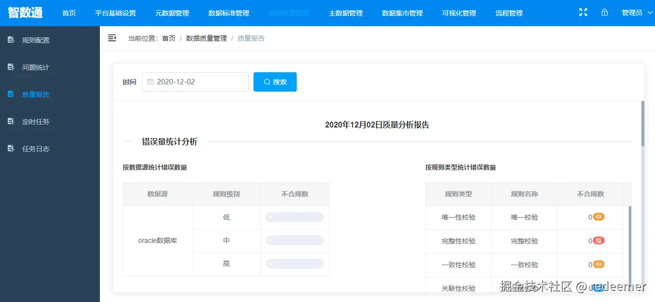 - 数据质量报表支持生成数据质量报表。