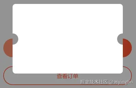 那么如何实现开篇的那种完全透明的镂空效果呢?我们可以把优惠券拆成上中下三块,中间那块通过构造透明半圆,白色背景用白色大边框替代,以达到相同效果,代码如下: