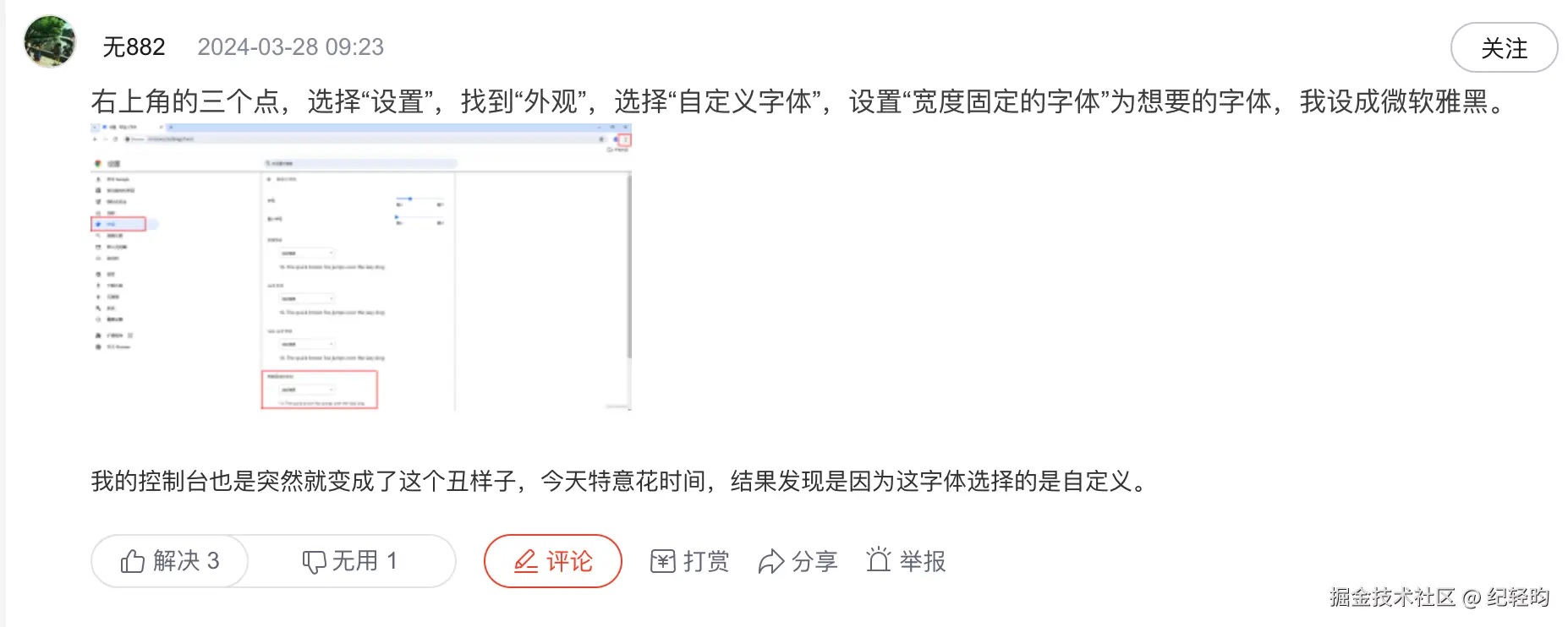 于是,我就进行百度了:『Chrome 控制台的字体能调整吗』,搜索到 CSDN 这两篇求助贴: