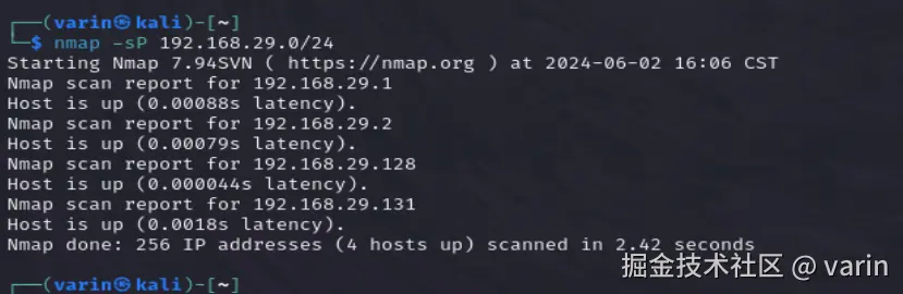 nmap -sP 192.168.29.0/24
