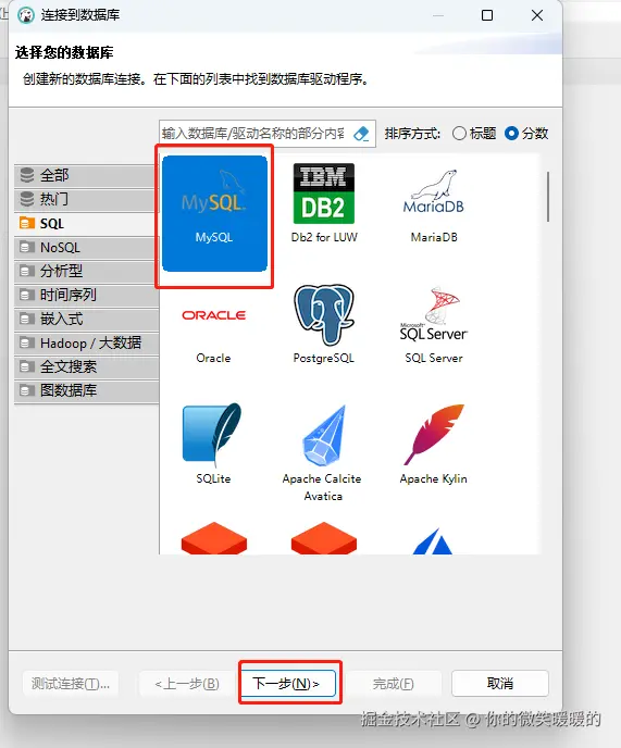 选择mysql,在下一步