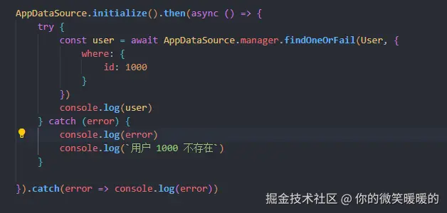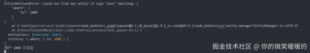 他找不到时会抛一个 EntityNotFoundError 的异常