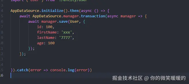 - 定义实体:创建 TypeScript 类,使用 TypeORM 提供的装饰器来定义实体属性和数据库表的映射关系。