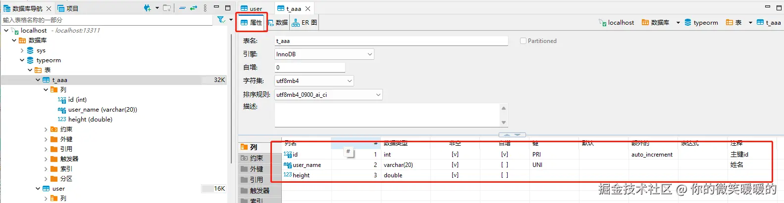 name: 't_aaa' // 自己定义表名