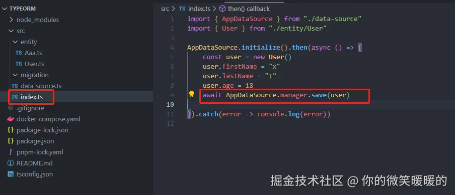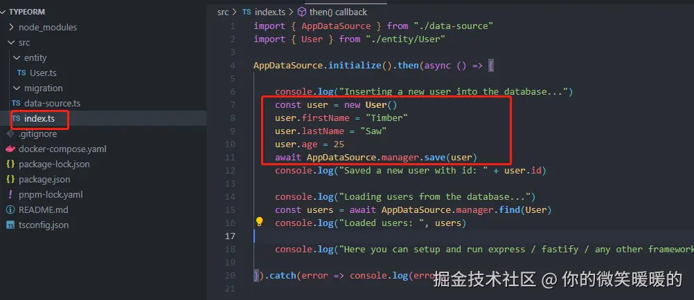 默认生成的数据是在index.ts中,它给我们写的