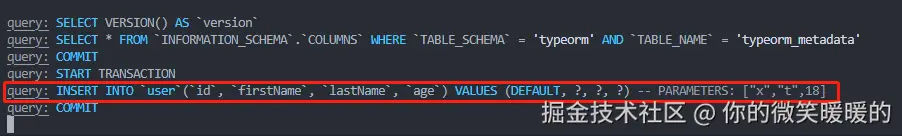 - 执行操作:使用 TypeORM 的 API 来执行 CRUD(创建、读取、更新、删除)操作。