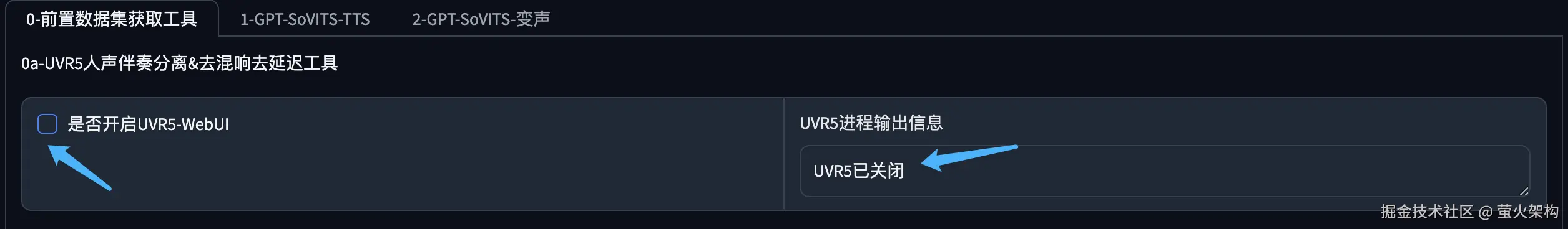 处理完毕之后,关闭UVR5,节省显存使用。只需要去掉勾选即可。