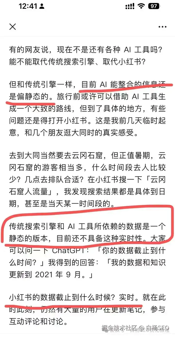 不管怎么样,不用过度担心,AI搜索取代搜索引擎,甚至像用户生成内容这样的比如抖音,小红书,哪怕微信搜一搜,都还要很久很久…