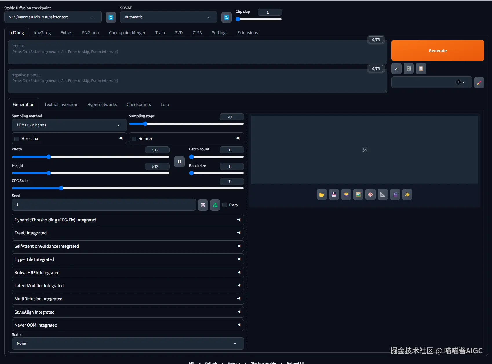 Stable Diffusion WebUI Forge 超快SD整合包适用于各类创作者: