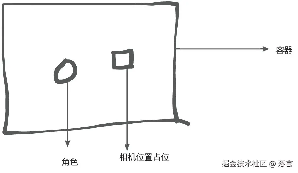 先来实现1,这个其实就更简单了,我们可以搞一个容器,包裹角色。然后利用容器的相对位置关系找一个位置放置相机,然后将上面在移动时候更新角色的逻辑调整为更新容器