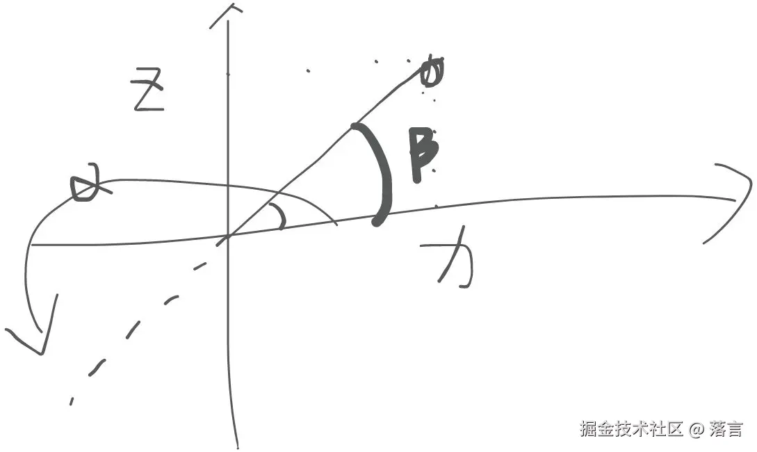 假设x就是我们目前的朝向向量,我们想要获取z。同时y这个正上的向量我们也是已知了。那么z很明显就可以通过x和y的叉积得到