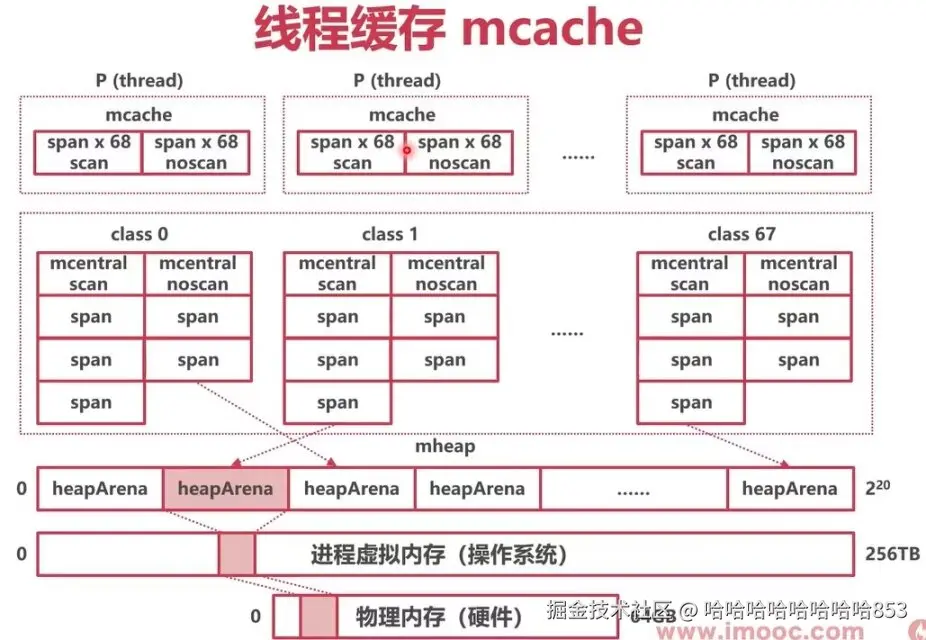 其中,mcentral是mspan的索引集。scan代表gc是否扫描。