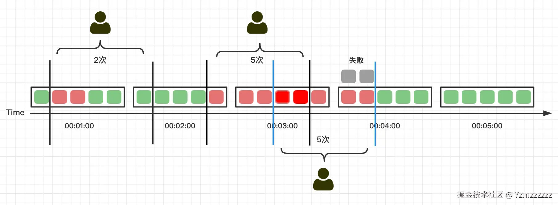 局限性:如果此时有用户在00:01:59发出5个请求,在00:02:01发出5个请求,普通时间窗口是没法检测到的,也就是说时间窗口配置是5次/min,但一些恶意请求在临界点是可以达到10次/min的