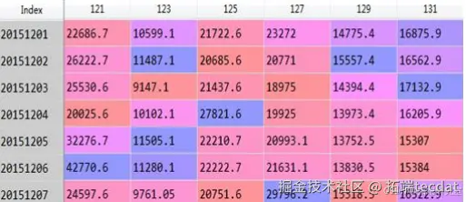 通过用分层读取法并用二分法获取数据,并对异常值处理之后获取到目表数据如下:(只列举部分特征)。分别处理四个月的地铁人流量数据获取如下数据