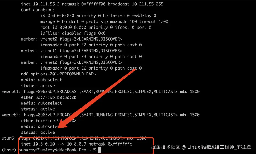 观察下图:已经为我们分配的对应的虚拟IP,通过这个IP在这个网段内的机器都可以互通了