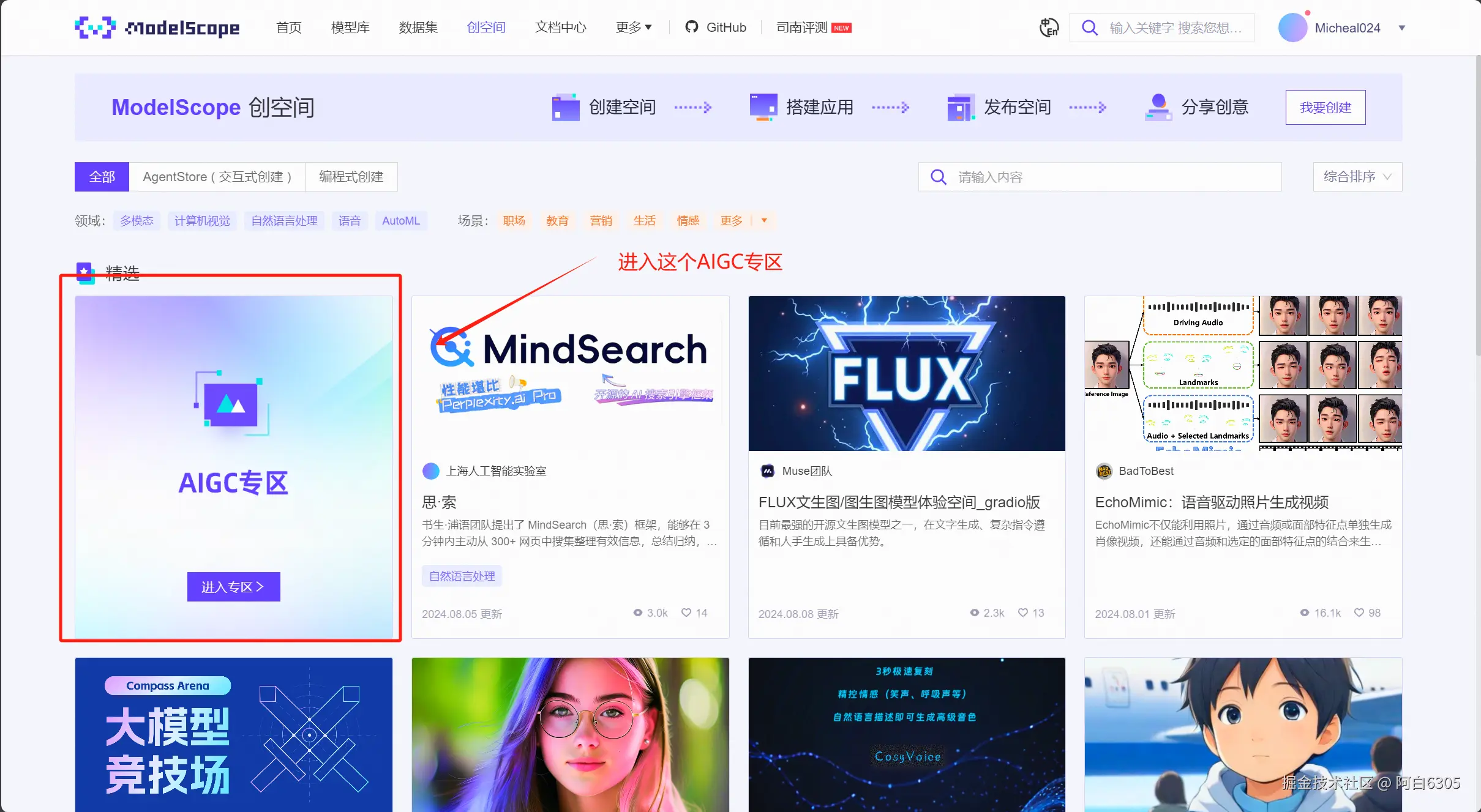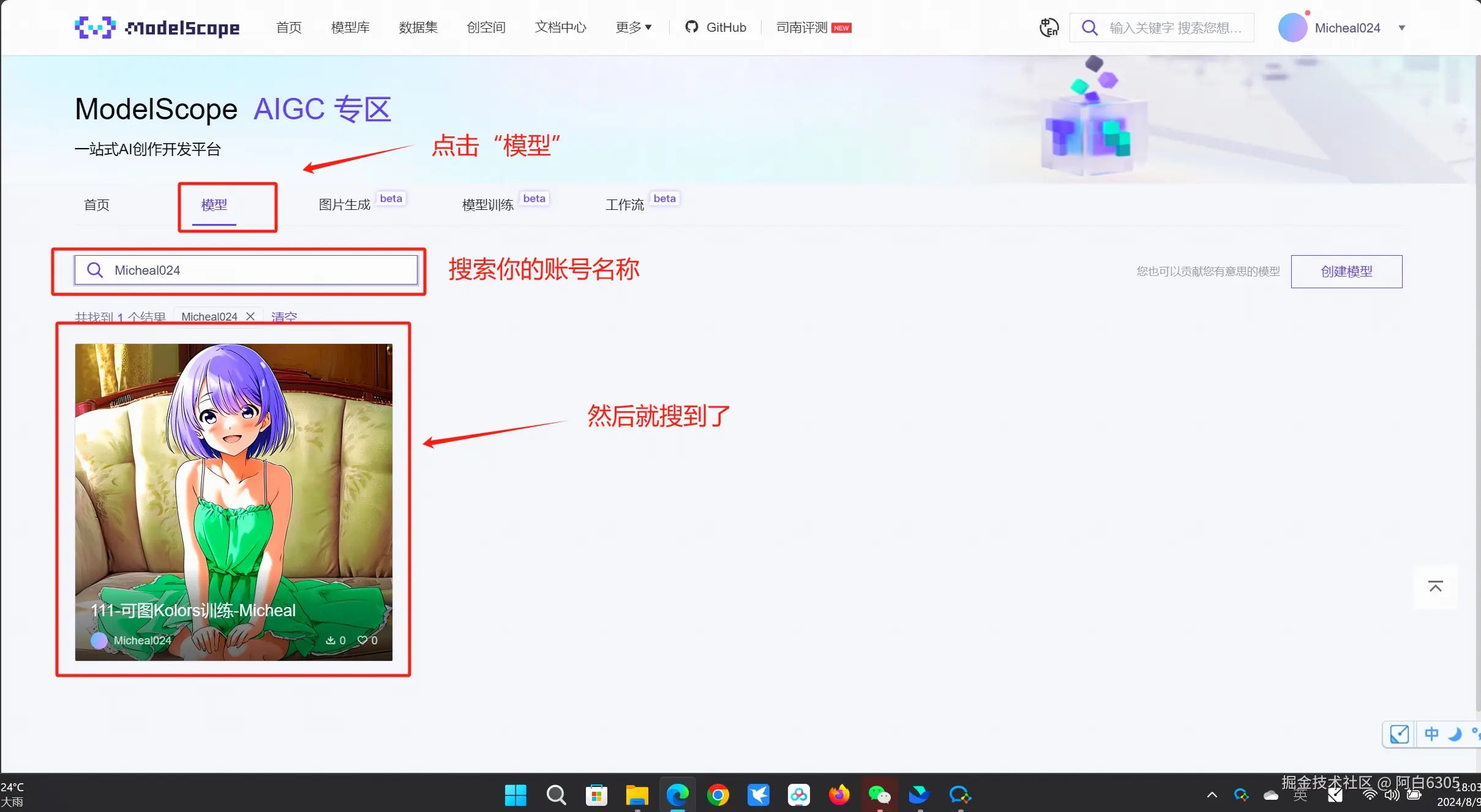 - 来到创空间,查看自己的模型是否发布
