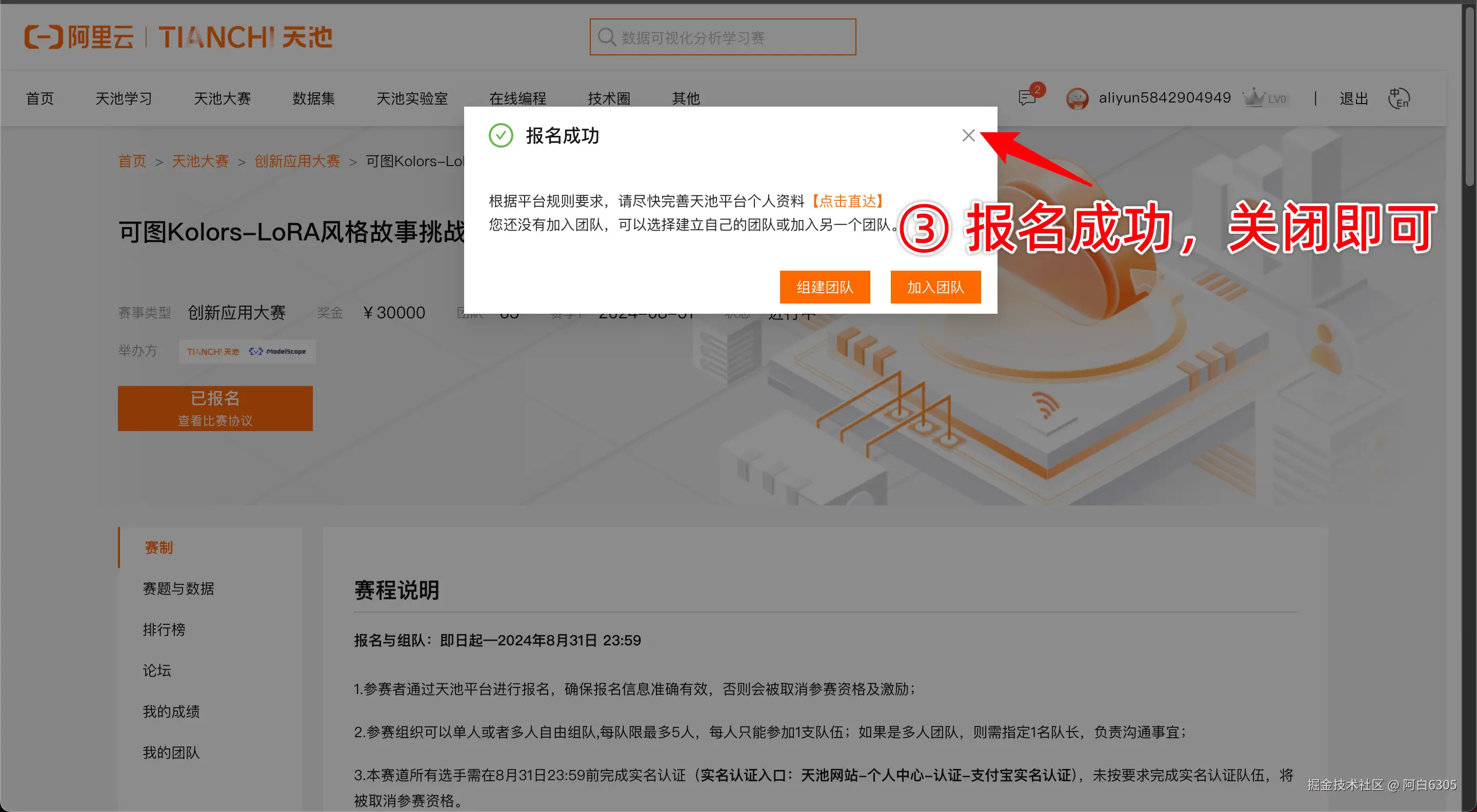 点击报名比赛,即可报名成功