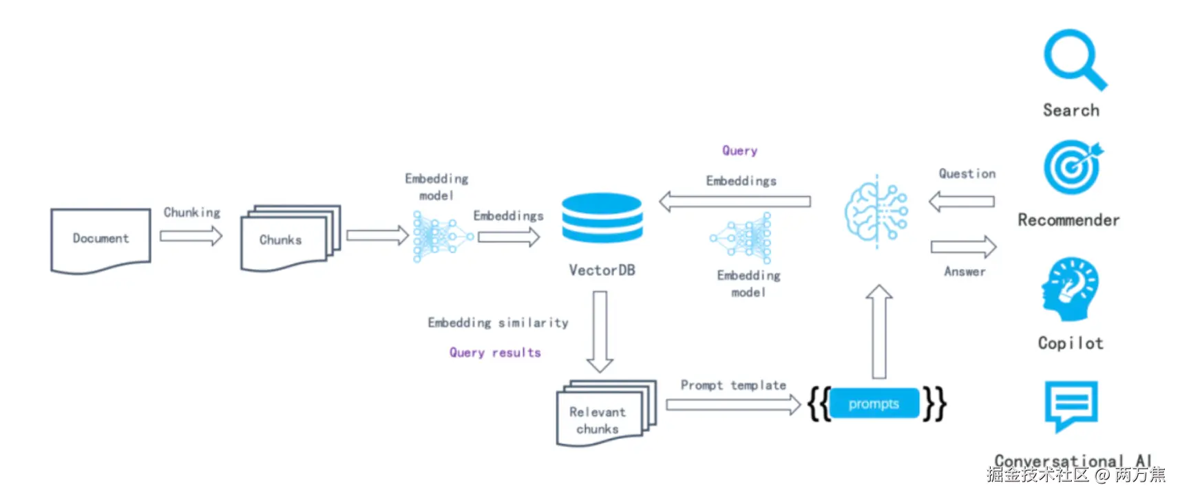 - 第一阶段:使用最简单的向量召回方式,找到在语义向量维度最近似的答案进行召回,只需要找到合适的 embedding 模型和向量数据库即可