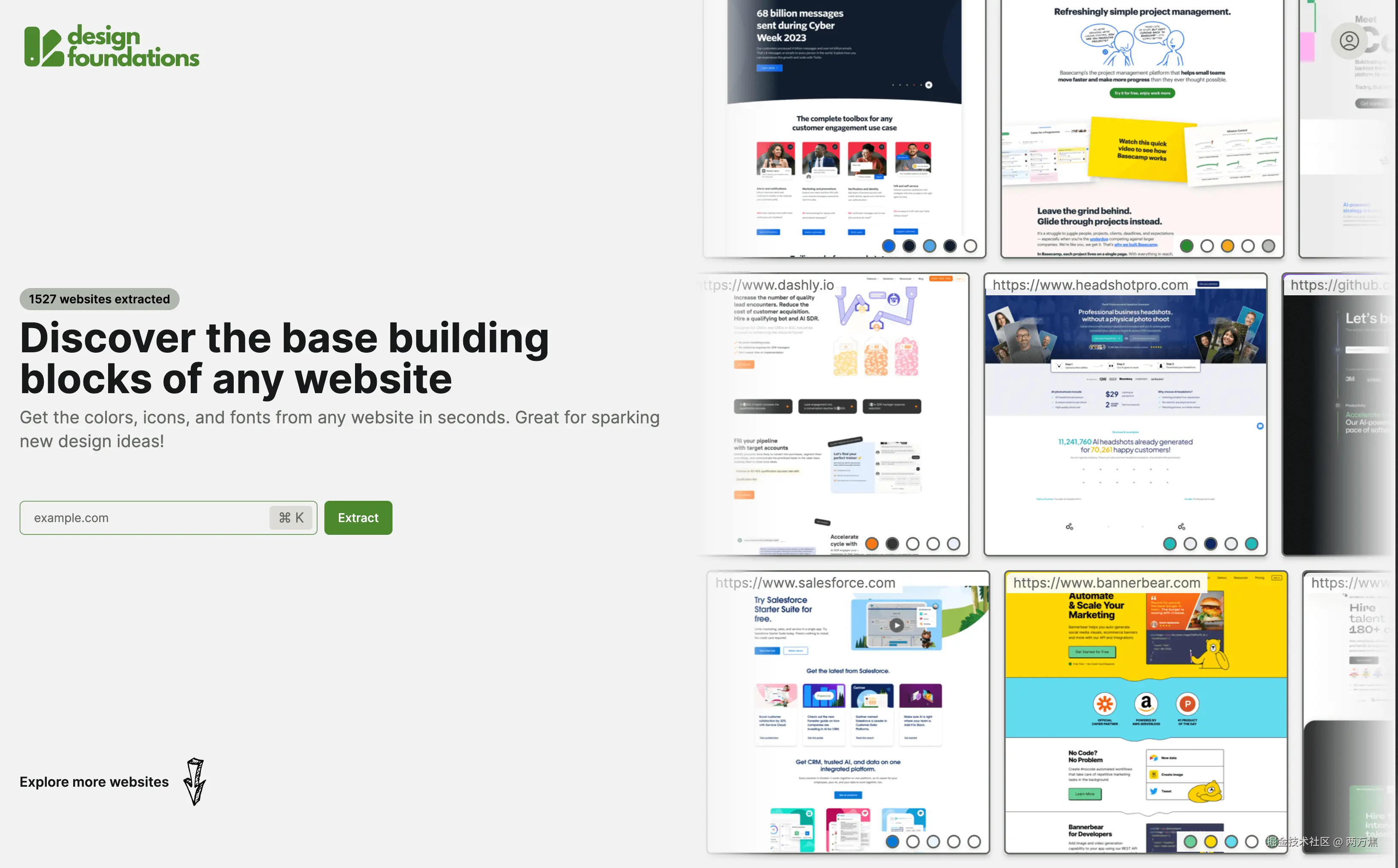 - design-foundations:能够自动抓取网站字体、配色、icon 的工具,适合用来学习其他优秀的网站设计