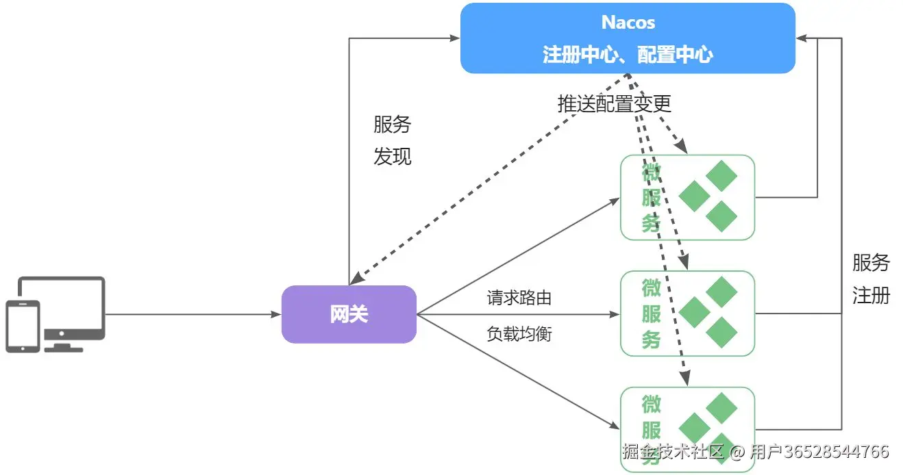 - 通过认证后,网关再根据请求判断应该访问哪个微服务,将请求转发过去