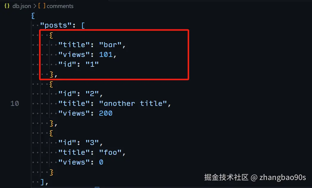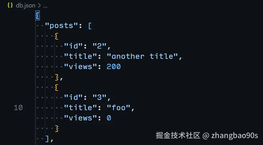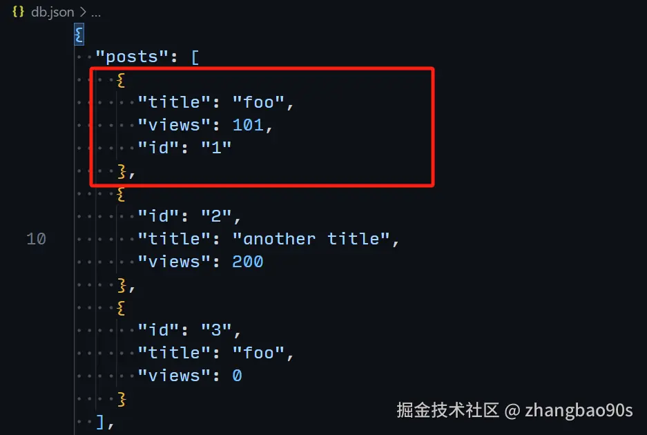发现,db.json 中增加了 1 条 id 为 3 的记录。