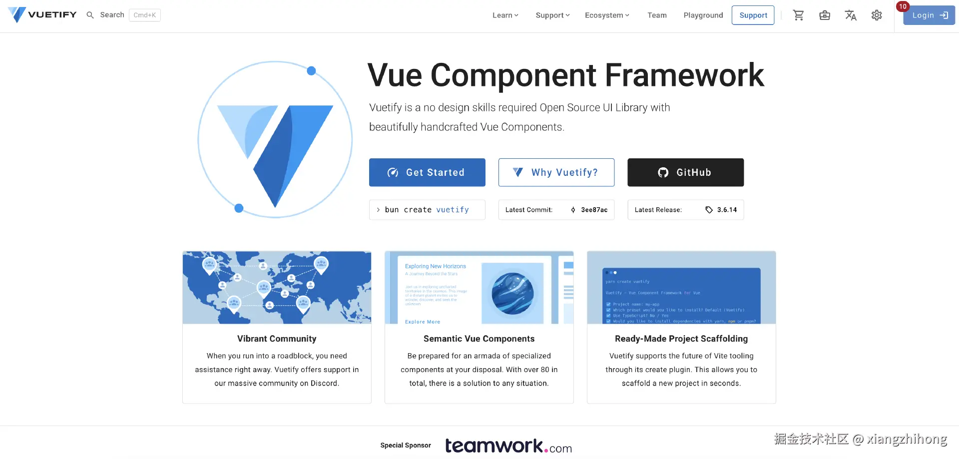 vuetify 作为一个经典的老牌vue框架,几乎是和 vuejs 同一时期发布的,遵循 Material Design 的设计规范,且组件非常丰富,使用起来非常灵活。而且最主要的是,这个组件库一致在处于活跃的状态,社区生态也十分活跃。