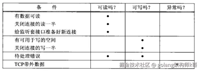 select实现原理:从用户空间拷贝fd_set到内核空间,遍历所有fd,将当前进程挂到各个设备的等待队列中,挂到队列的同时会返回是否就绪的掩码,当所有fd返回的掩码均未就绪,则当前进程睡眠。当fd对应设备驱动发现可读写时,则会唤醒处于睡眠态的进程。如果超过一定时间还未唤醒, 则调用select的进程会重新被唤醒获得CPU,进而重新遍历fd,判断有没有就绪的fd,将fd_set从内核空间拷到用户空间[4]。