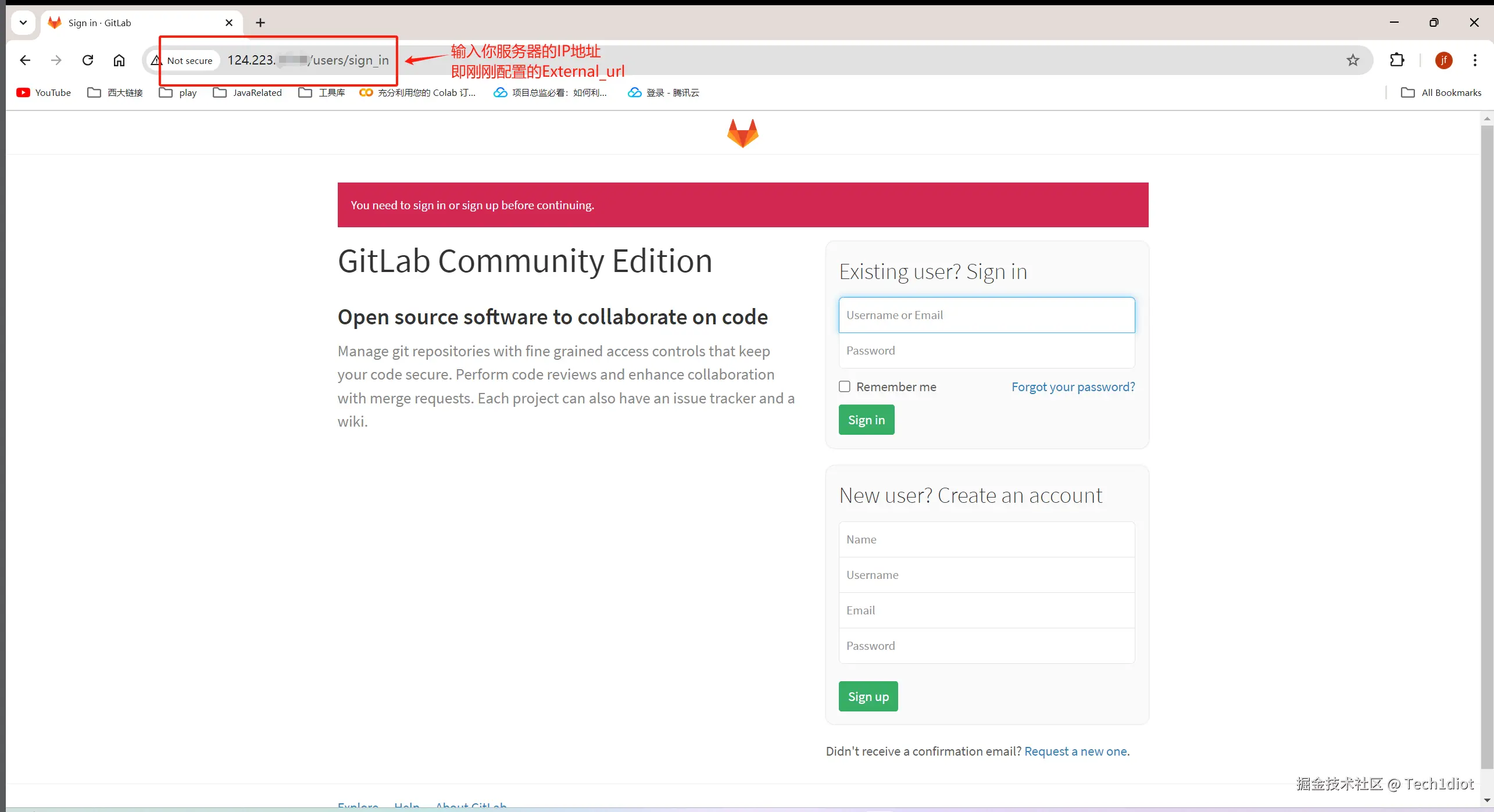 external_url '<http://your_domain_or_ip'> # 输入你的服务器地址