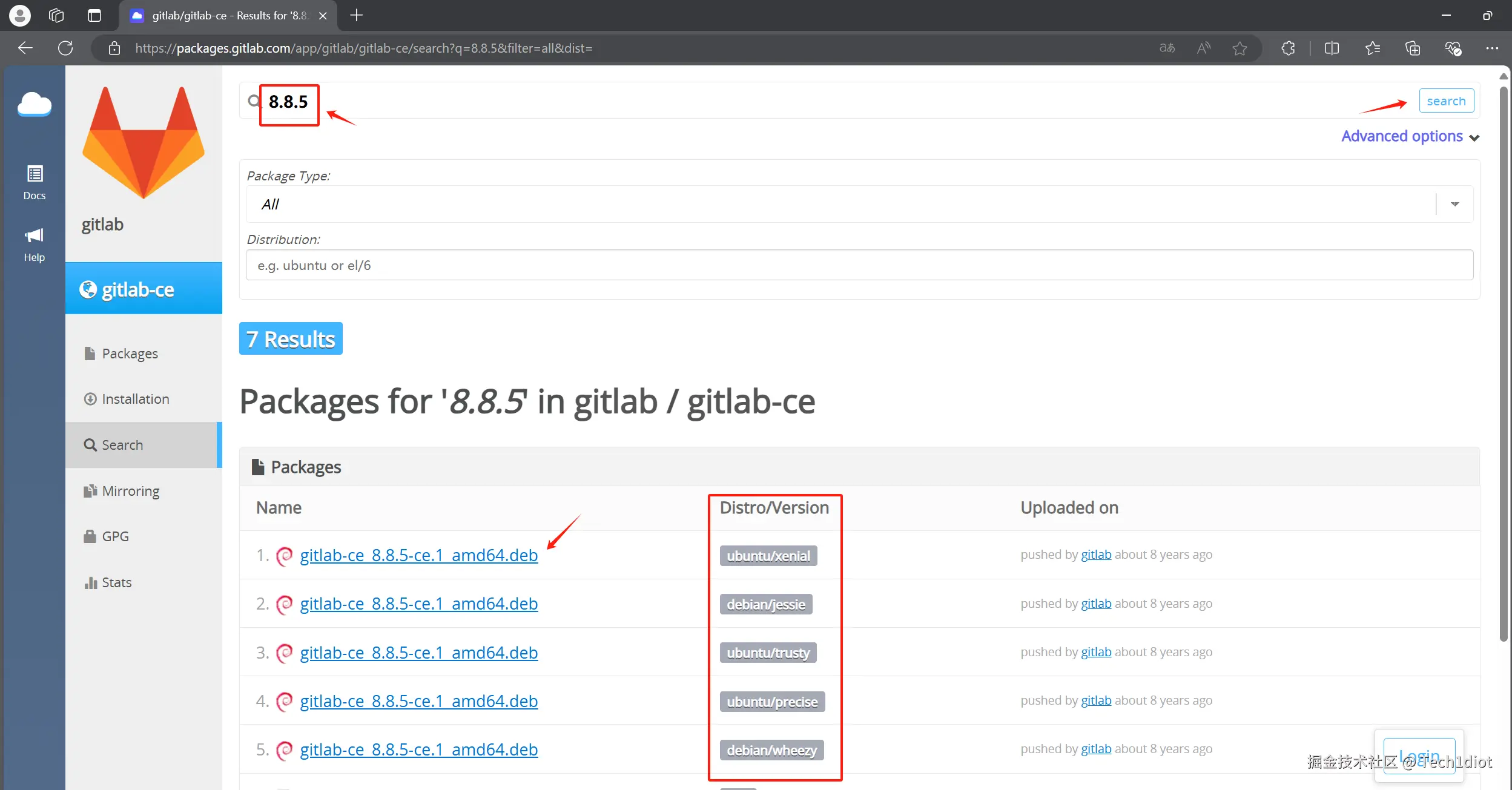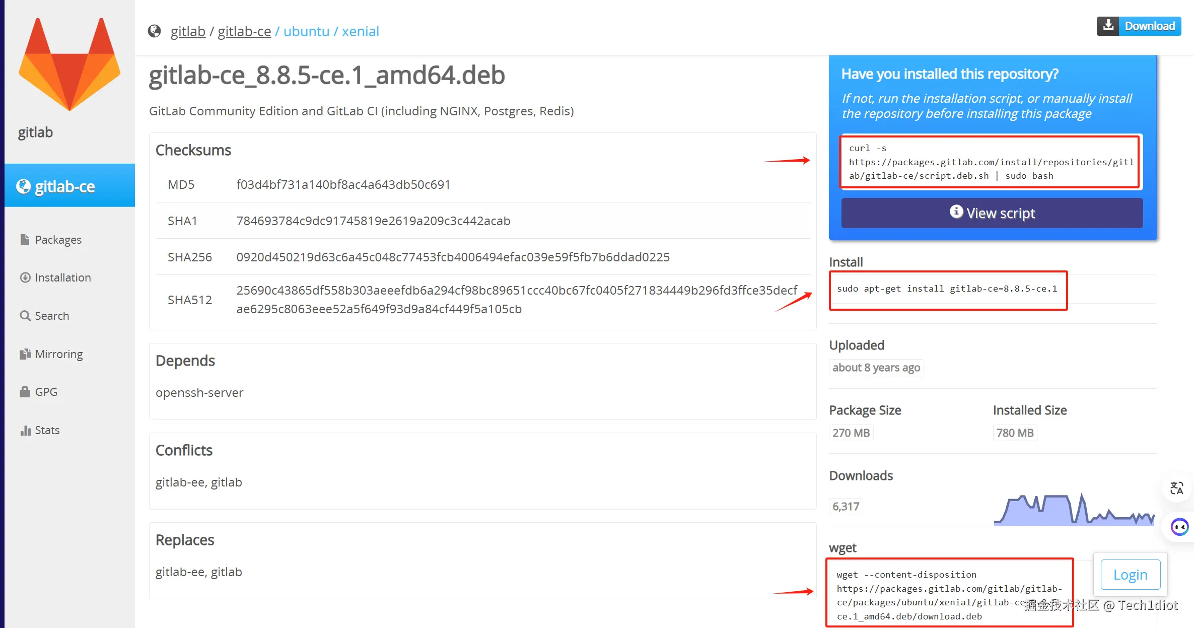 1. 进入gitlab的软件包下载网站:gitlab/gitlab-ce - Packages · packages.gitlab.com