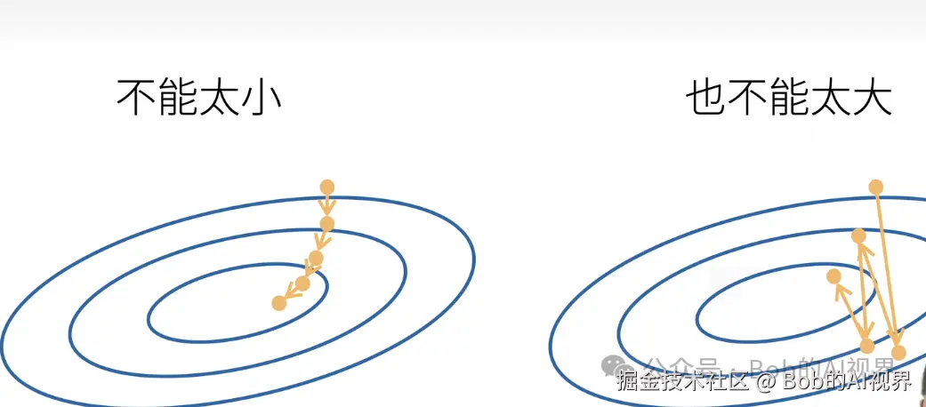 学习率太大会导致步子参数更新幅度太大,过头了,会产生震荡,也难以收敛.