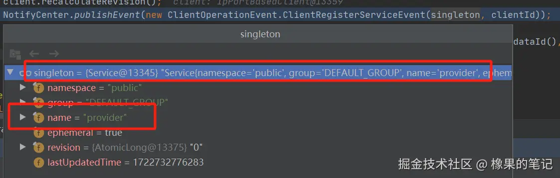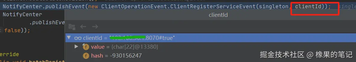 NotifyCenter.publishEvent(new ClientOperationEvent.ClientRegisterServiceEvent(singleton, clientId));