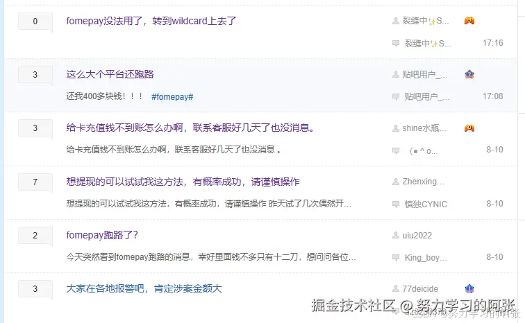 这几天虚拟信用卡圈又爆出一个雷,fomepay平台居然跑路了,来看看贴吧上的人怎么说