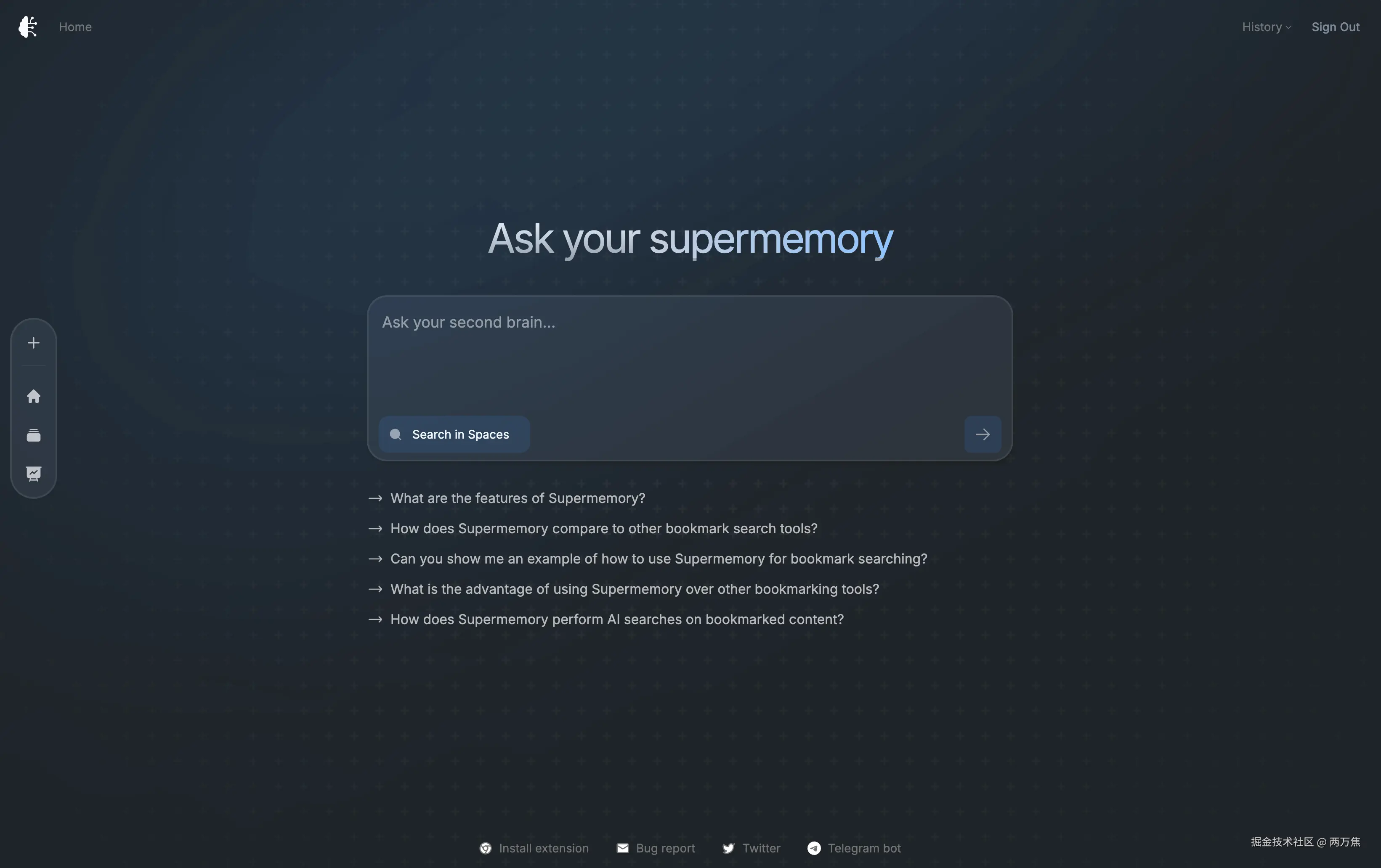 supermemory:一个开源的个人知识库,可以保存网络信息,比如网页、书签、笔记等内容,然后基于这些内容进行 AI 检索
