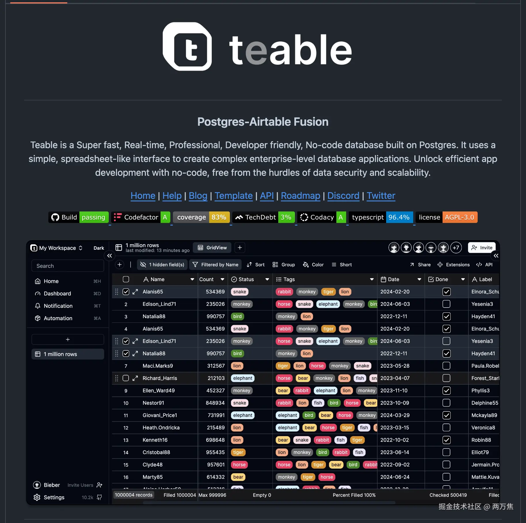 Teable:Airtable 的开源替代品,通过无代码的方式搭建数据库