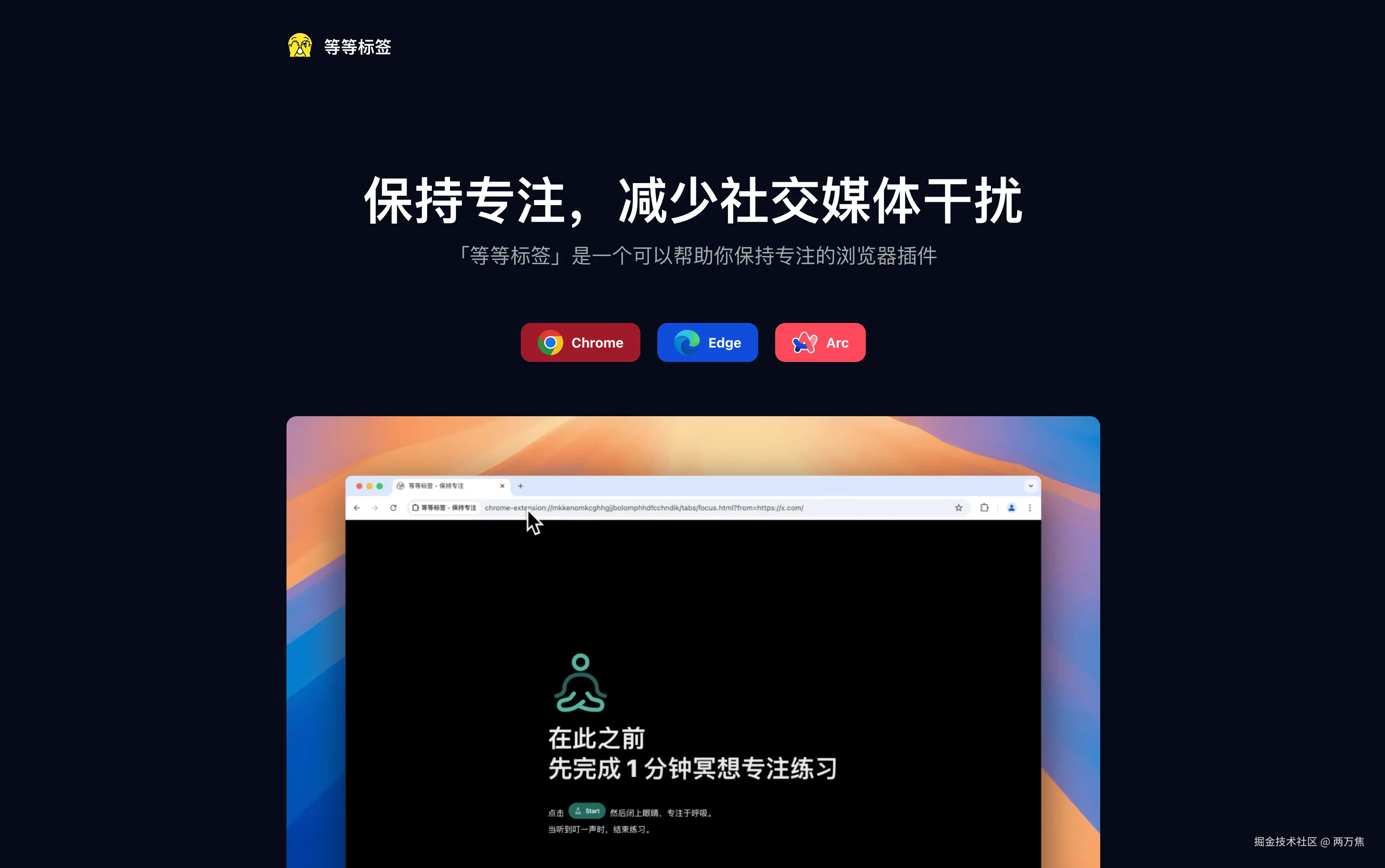 等等标签:在进入网站前进行冥想或者倒计时,可以用来保持专注,减少分心