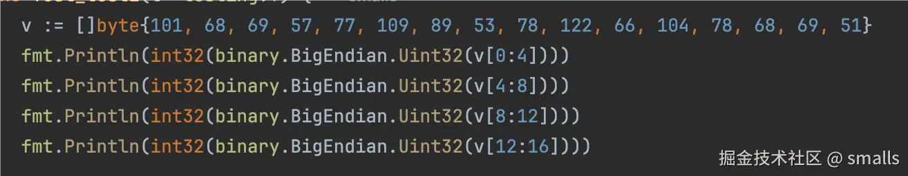 - 16位 aeskey一般会转换成 [4]uint32,4*4数组,[[0,0,0,0],[0,0,0,0],[0,0,0,0],[0,0,0,0]],16个字节