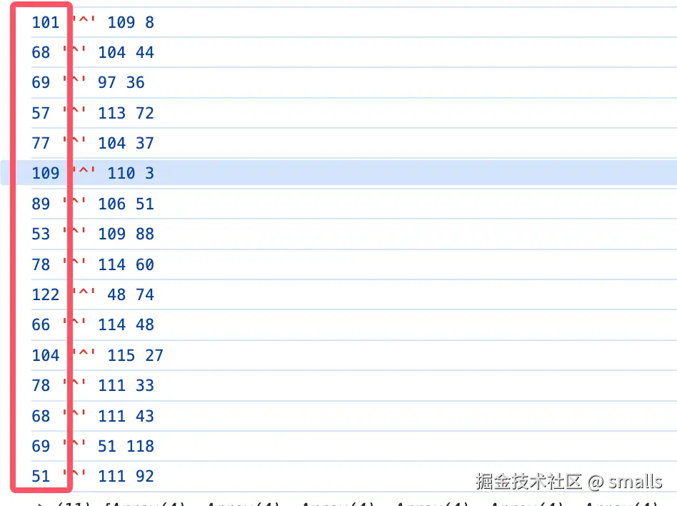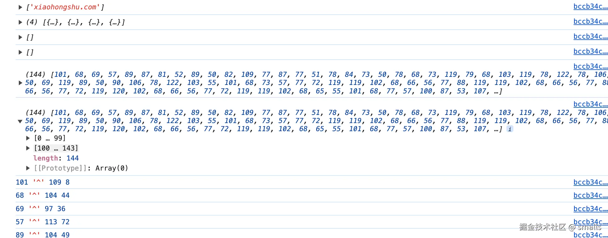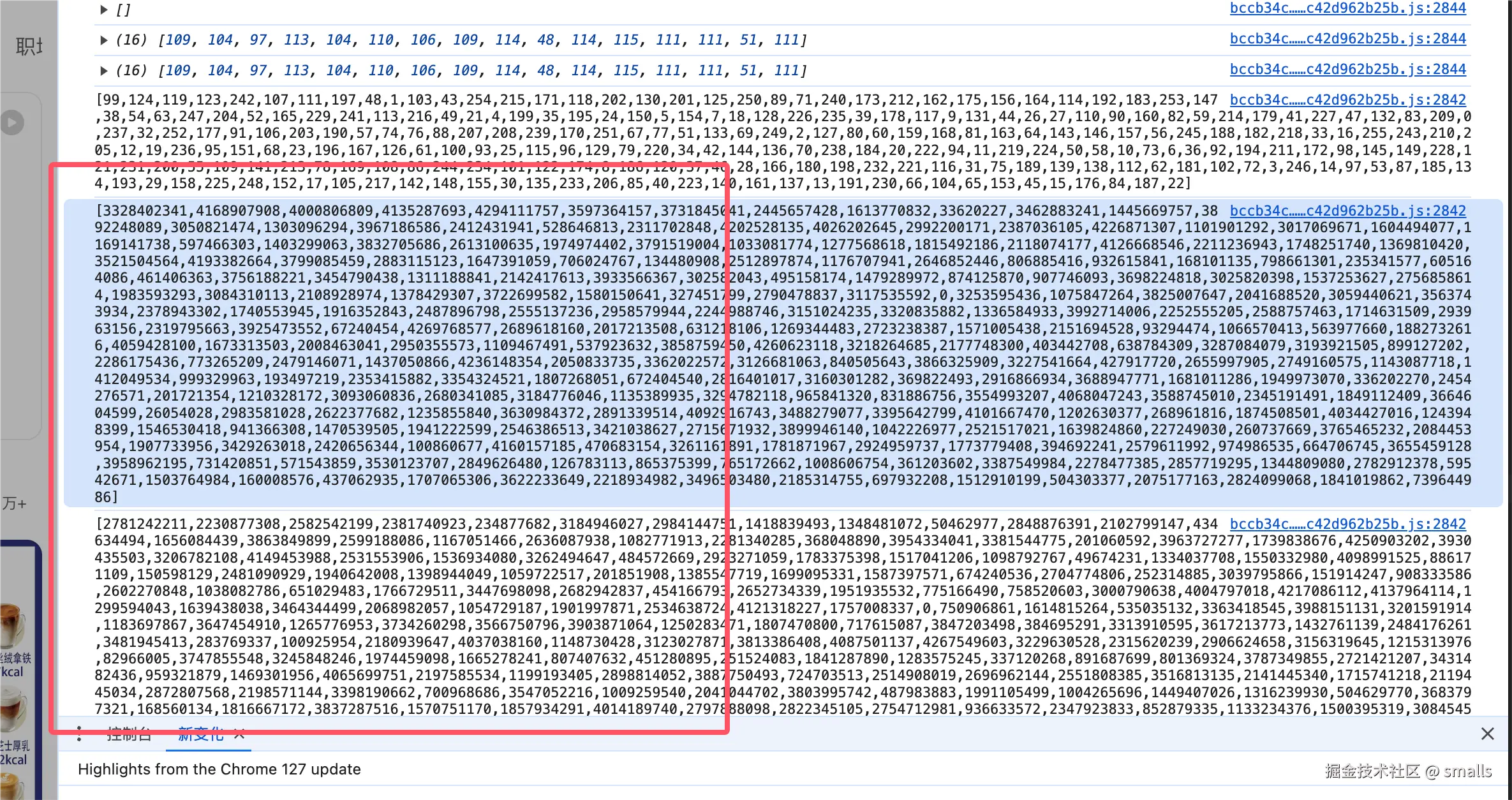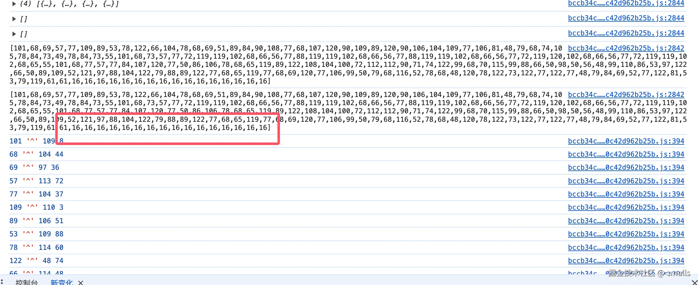 我们再往下找找看看,看一看待加密内容是什么,这里出现一个像待加密内容的数组,我们把它转换成字符串看看。