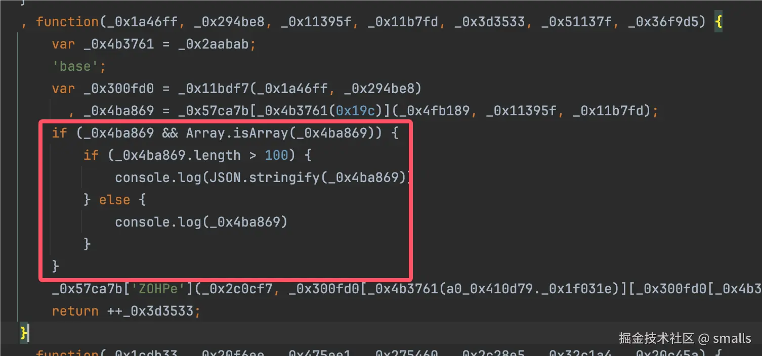 - 打印位置1,这里我判断_0x4ba869是否为数组,是的话就进行打印