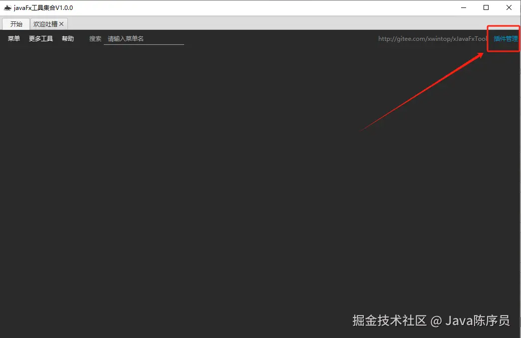 3、安装完后,运行软件,默认显示是空的,需要点击右上角的插件管理下载安装插件