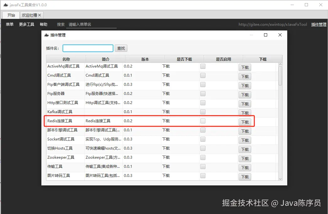 4、在插件管理中,下载插件,并启用,就能开始使用工具了
