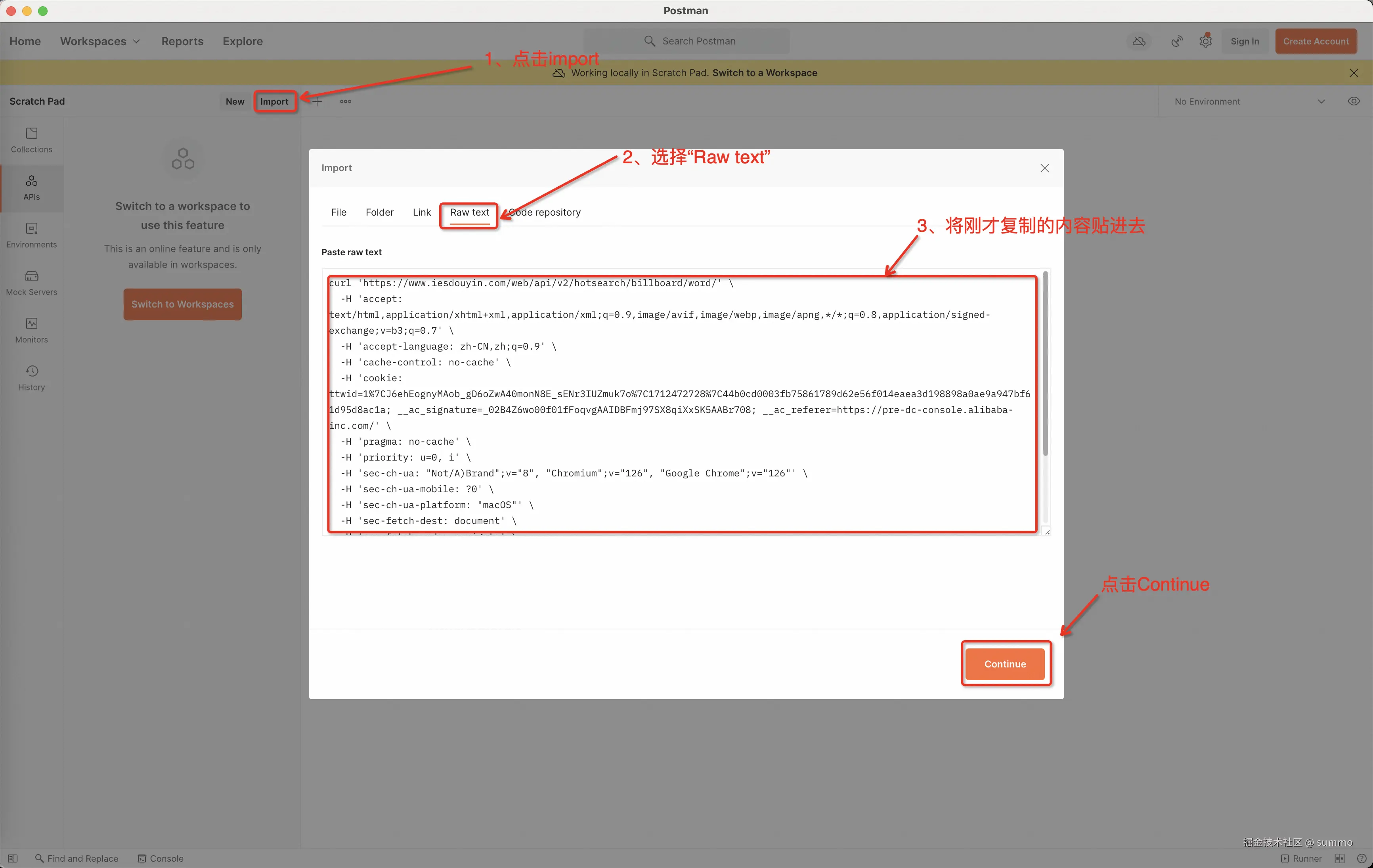 按照我上面的步骤,将cURL命令导入Postman,可以快速生成一个调用请求,如下图: